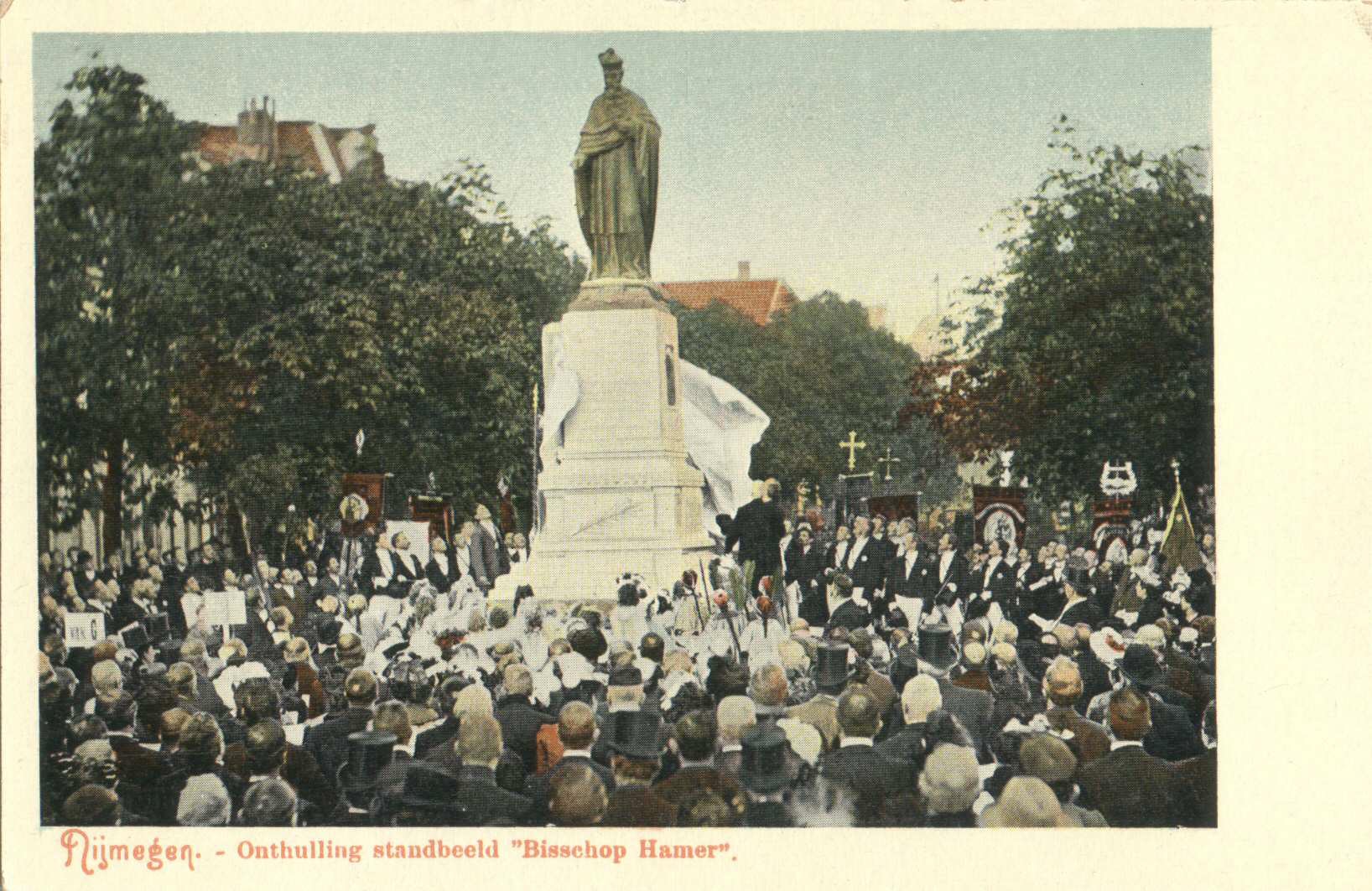 Op zondag 28 september 1902 wordt een beeld van bisschop Hamer onthuld aan het begin van de Bisschop Hamerstraat. Het beeld is gemaakt door beeldhouwer Bart van Hove (1850-1914). Deze klassieke beeldhouwer heeft ook beelden gemaakt voor de gevel van het Rijksmuseum in Amsterdam. In 1949 komt het beeld 'tijdelijk' te staan aan het begin van de van Schaeck Mathonsingel. Op het middenterrein van de Bisschop Hamerstraat waren noodwinkels gebouwd. Zoals die van de Vroom & Dreesmann. Na de afbraak van de noodwinkels kwam er een parkeerplaats, zodat het beeld daar niet meer kon staan. Pas in 1999 komt het beeld weer terug op zijn oorspronkelijke plek. Het beeld is een rijksmonument.