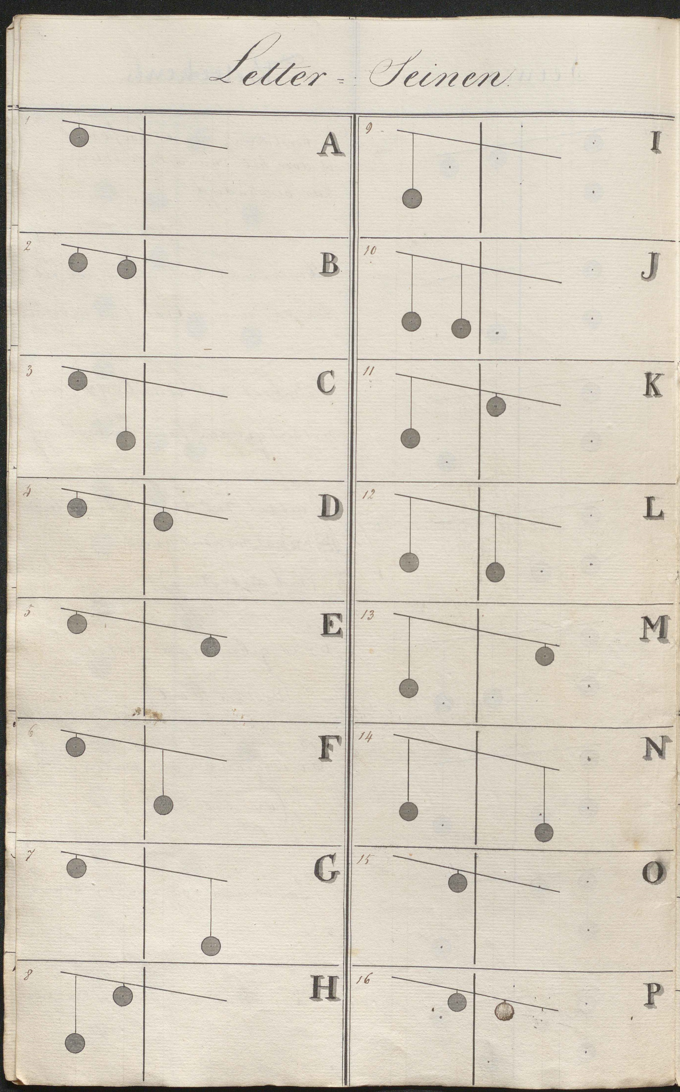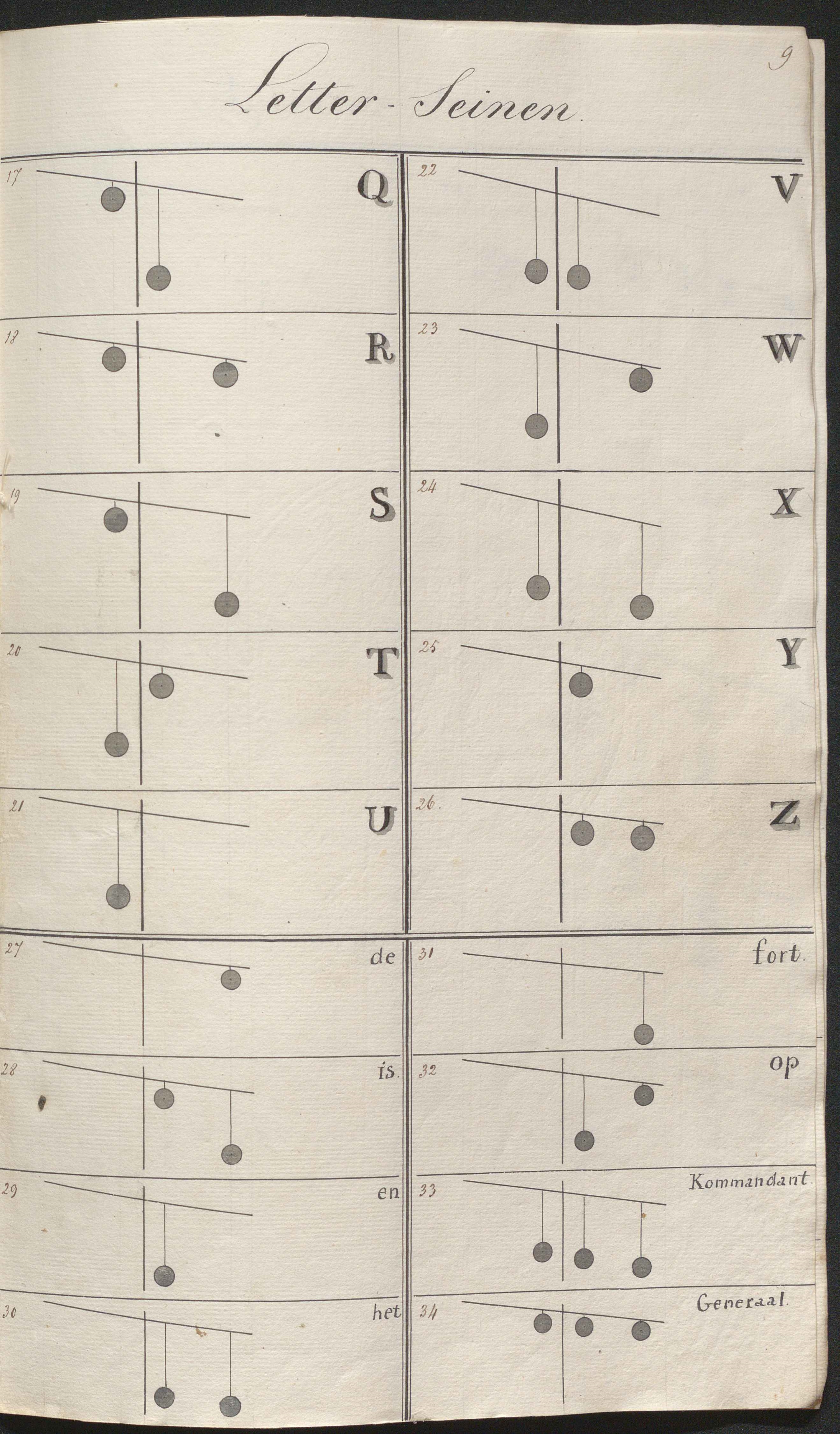 De bron die we hier zien is een seinboek uit het verdedigingsfort Sterreschans uit de jaren dertig van de negentiende eeuw. Het bevat codes voor berichten die belangrijk waren voor de verdediging van de vesting Nijmegen.